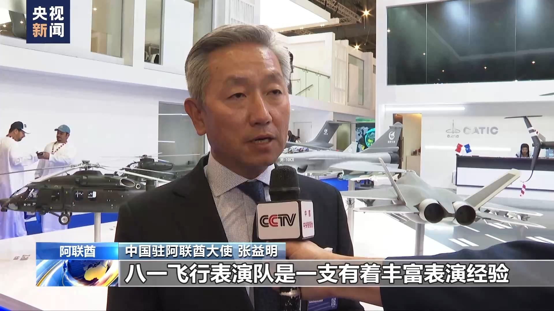 中國駐阿聯酋大使 張益明:八一飛行表演隊是一支有着豐富表演經驗、飛行表演技術精良、深受觀衆熱愛的飛行表演隊。我們期待八一(飛行表演)隊能夠在迪拜的上空展示出我們中國空軍的最高飛行水平,爲增進中國和阿聯酋兩軍和兩國人民的友好交往和感情作出新的貢獻。