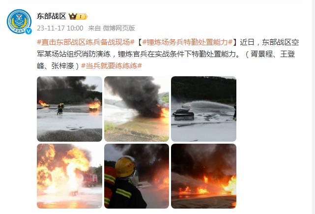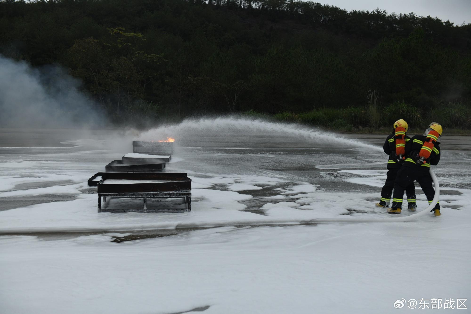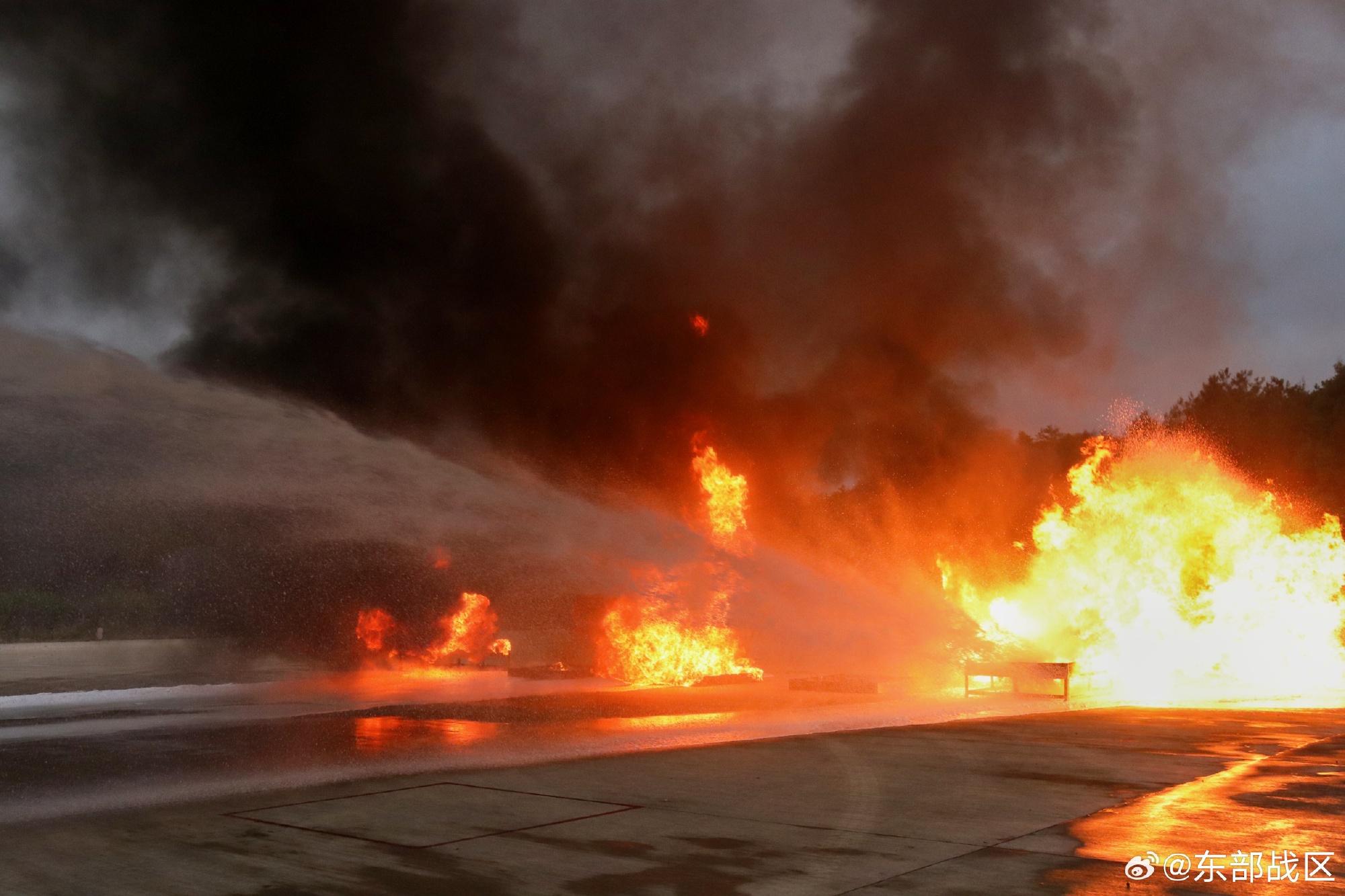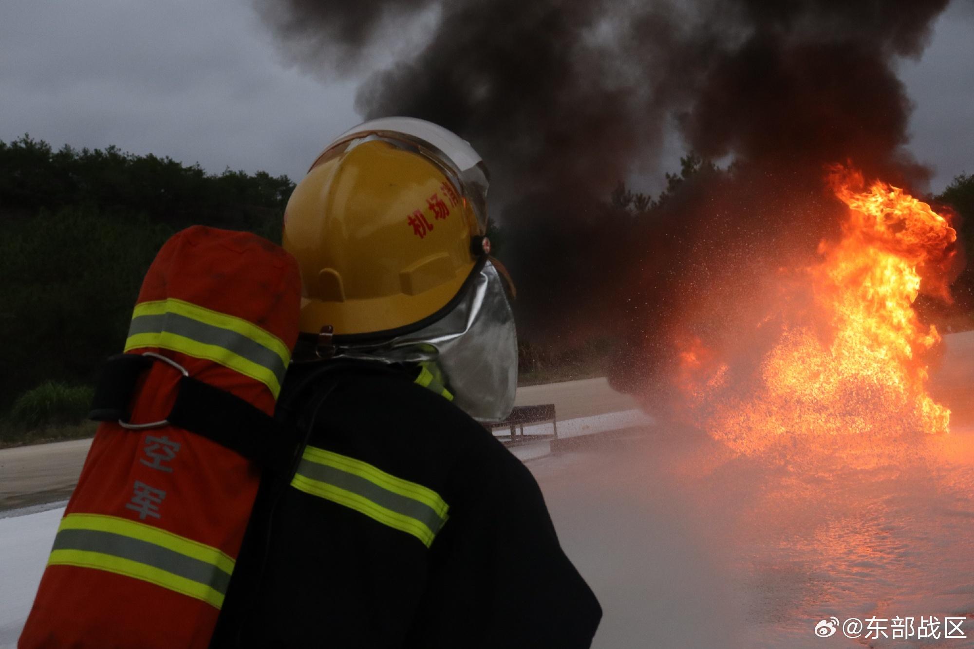 近日,東部戰區空軍某場站組織消防演練,錘鍊官兵在實戰條件下特勤處置能力。(胥景程、王登峯、張梓濠)