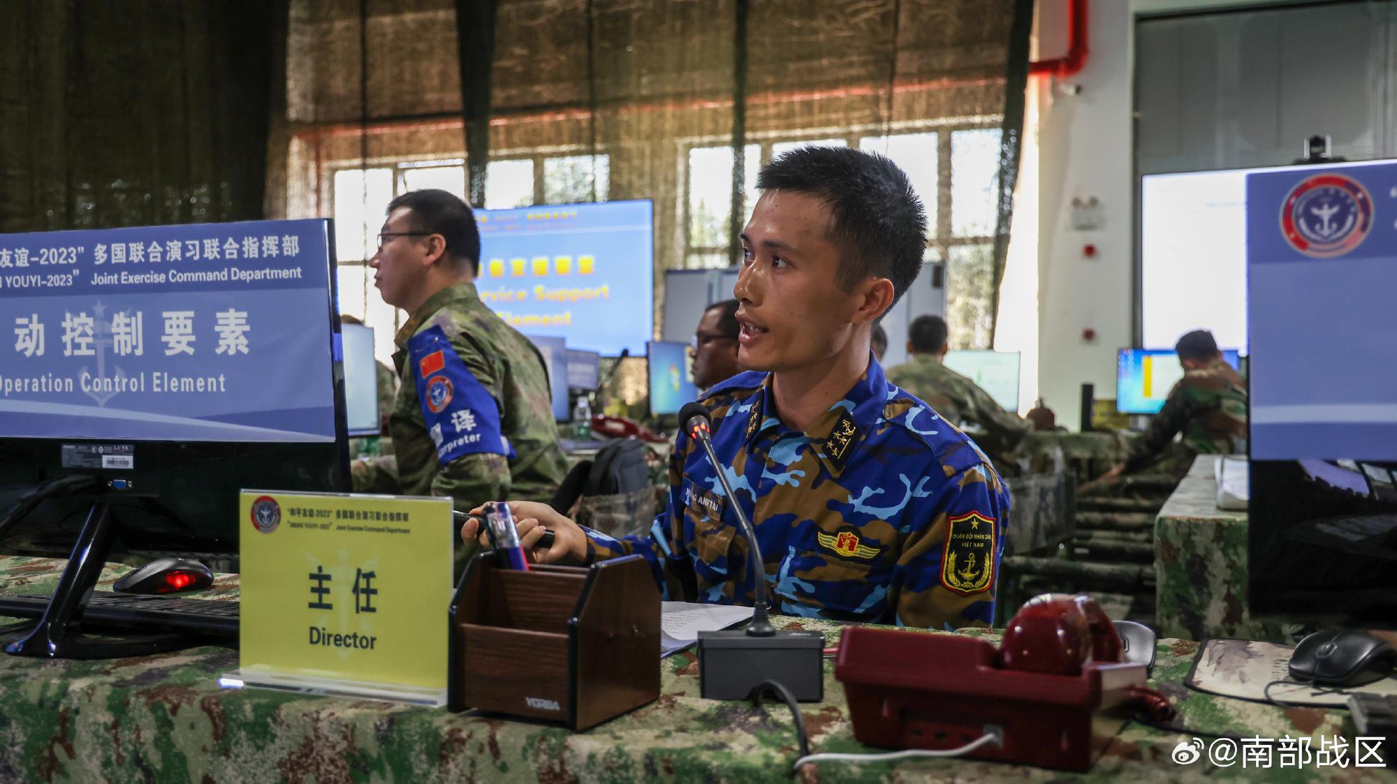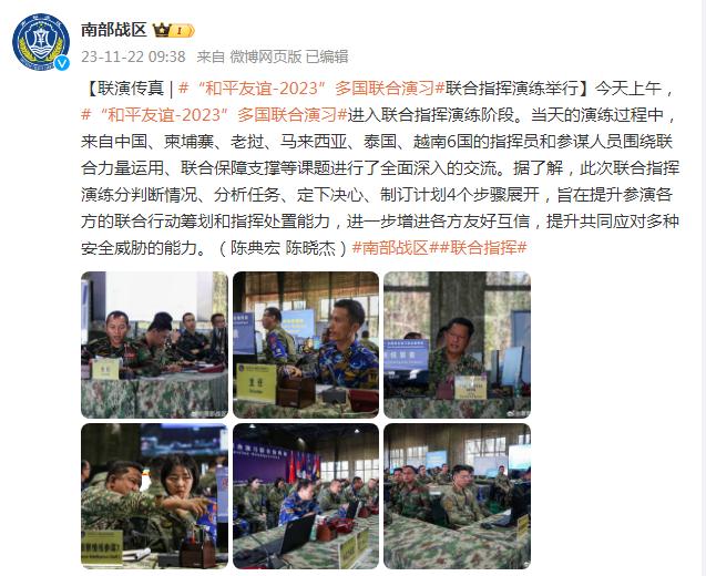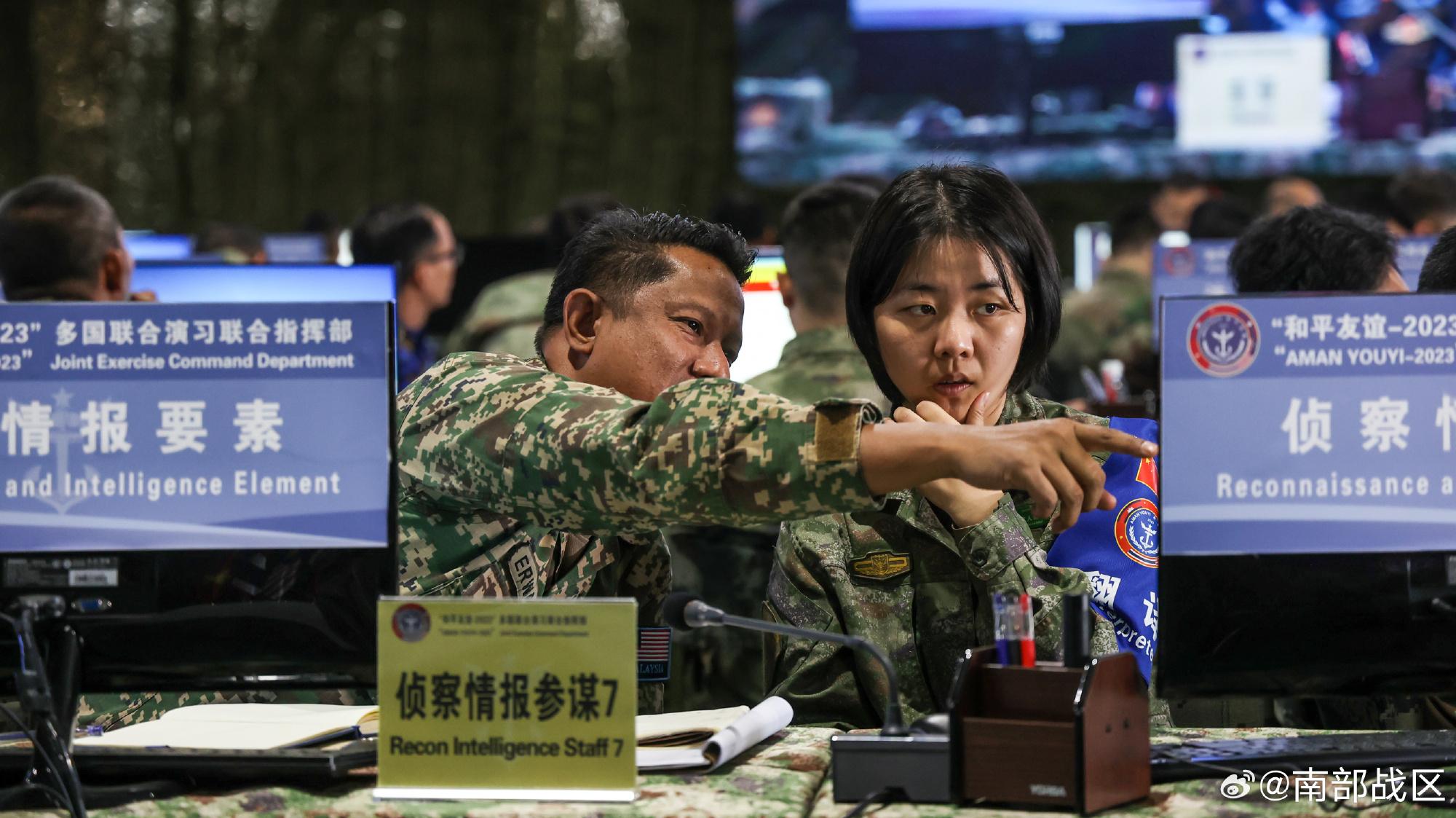 今天上午,“和平友誼-2023”多國聯合演習進入聯合指揮演練階段。當天的演練過程中,來自中國、柬埔寨、老撾、馬來西亞、泰國、越南6國的指揮員和參謀人員圍繞聯合力量運用、聯合保障支撐等課題進行了全面深入的交流。據瞭解,此次聯合指揮演練分判斷情況、分析任務、定下決心、制訂計劃4個步驟展開,旨在提升參演各方的聯合行動籌劃和指揮處置能力,進一步增進各方友好互信,提升共同應對多種安全威脅的能力。(陳典宏 陳曉傑)