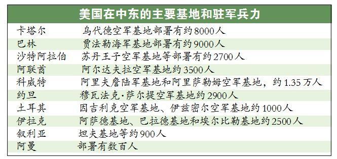 從當前美軍海外部署情況看,東亞、歐洲和中東地區是美軍的三大基地羣,這與美國干預全球事務的重點區域相對應。近年來,出於大國競爭戰略需要,美軍在東亞和歐洲的軍事部署呈強化之勢,逐漸減少了在中東的軍事存在。但對於美國而言,中東地區仍是其竭力把控的重點區域,美軍在此駐紮有約4.5萬人,分散在中東的10餘個國家。