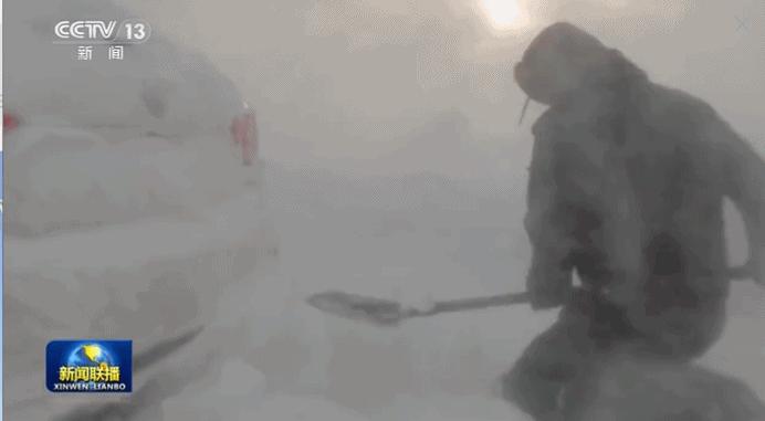 在零下30多度的天氣裏,瞬時風力超過8級,能見度不足10米,有5輛車18人被困。阿其圖和隊員們跪在雪地裏拿鐵鍬清理積雪,救援工作一直持續到當晚9點半,被困羣衆被成功轉移。