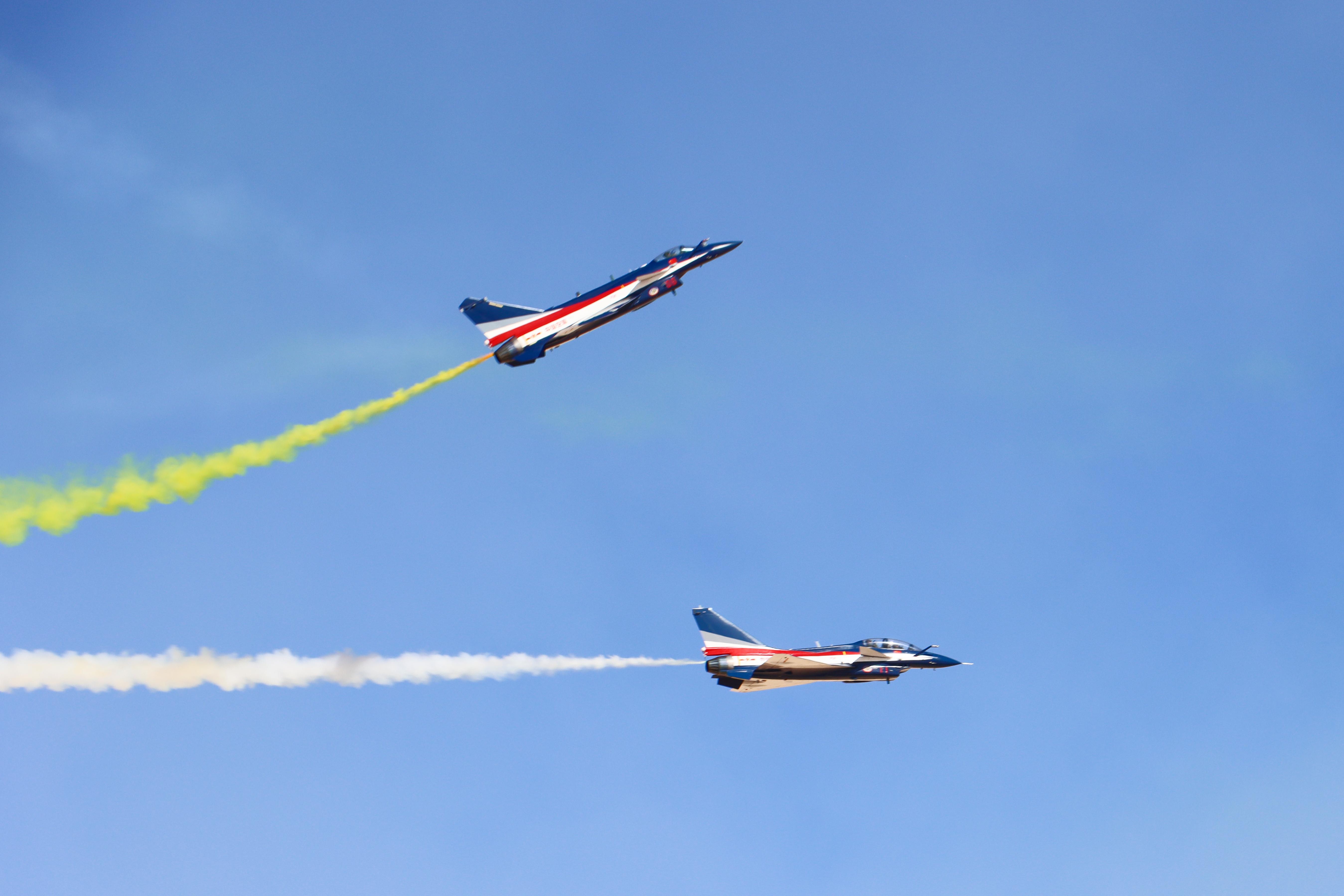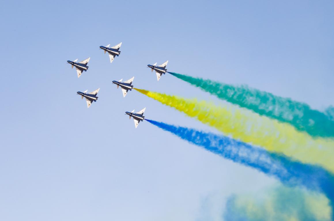 一架架表演機時而盤旋、時而俯衝,隊形轉換靈活自如。六機分組開花、四機垂直開花等數十個高難度動作輪番上演,動作銜接緊湊、隊形整齊壯觀,力量與速度的極限碰撞,技術與藝術的完美協調,展現出飛行員對飛機邊界性能的超強掌控能力以及戰機優異機動性能。