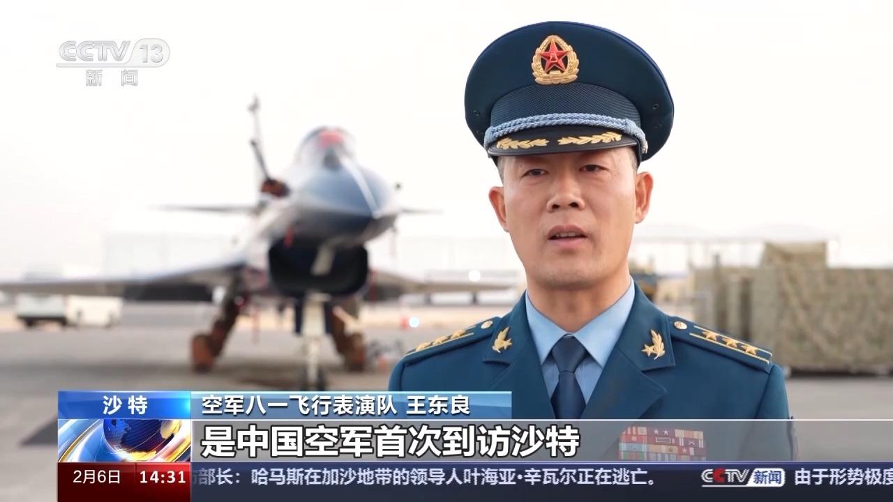 空軍八一飛行表演隊 王東良:這次赴沙特利雅得進行飛行表演,是中國空軍首次到訪沙特。展現的是中沙兩國、兩軍的深厚友誼,對於這次任務,我們高度重視,專門爲此創新設計了新的表演動作,做了精心充分的準備,我相信這次表演一定能爲沙方人民帶來非常享受的視覺盛宴。