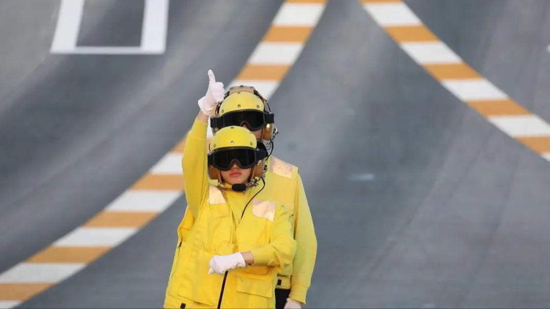 是航母山東艦上的引導員