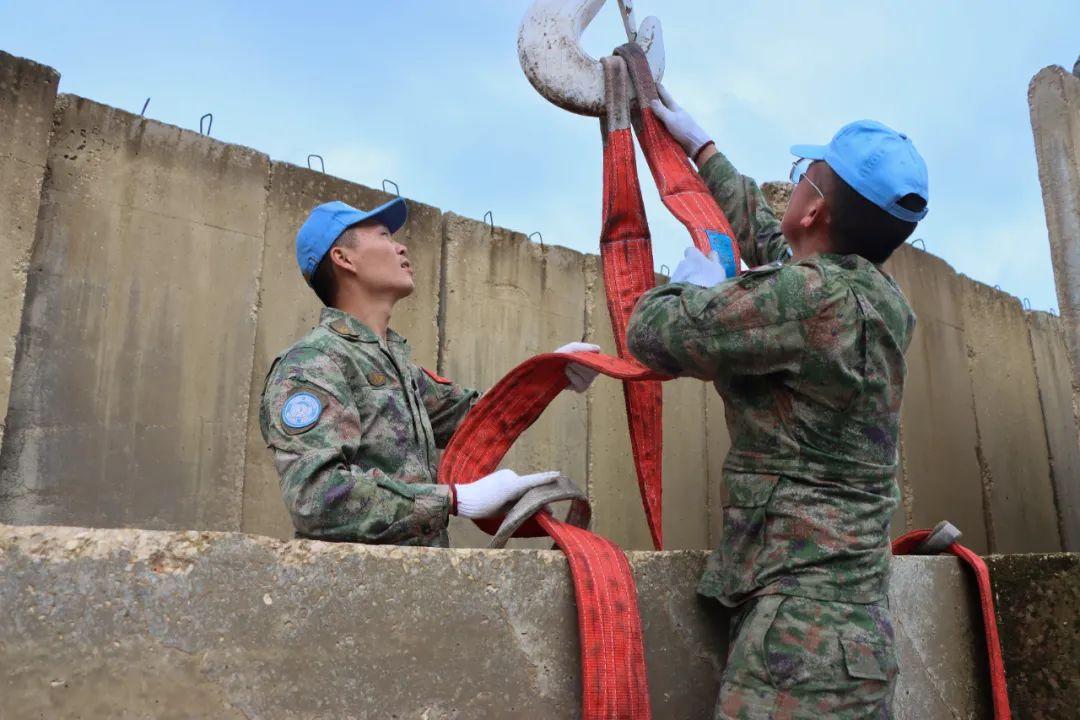 作業期間,官兵們克服山霧、雷雨等不良天氣影響,以及空間狹小、夜間昏暗等條件限制,安全順利地將T型防護牆轉至指定位置。精湛嫺熟的吊機操作技術贏得同行維和友軍的稱讚。