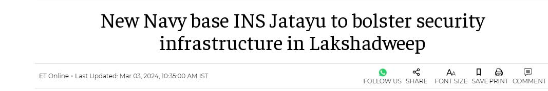 按照多家印度媒體的報道,這個新基地名直譯爲賈塔尤。《印度時報》的文章稱,該基地將發展成爲一個重要的軍事中心,並有望進行後續升級以起降戰鬥機。隨着印度軍隊從馬爾代夫撤軍,賈塔尤基地的啓用標誌着印度重新調整地緣政治戰略,“以應對這個島國(馬爾代夫)向中國的轉向”。面對地區挑戰,印度在拉克沙羣島的軍事舉措是一項積極主動的調整,旨在應對潛在威脅並確保重要海上通道的安全。