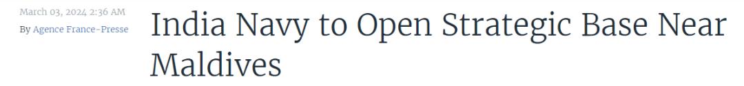 法新社3月3日報道稱,印度海軍表示,它正在馬爾代夫附近“具有重要戰略意義”的島嶼上增強軍力。而這是在馬爾代夫要求印度軍隊從該國撤離的大背景下,印度海軍的一個最新舉措。