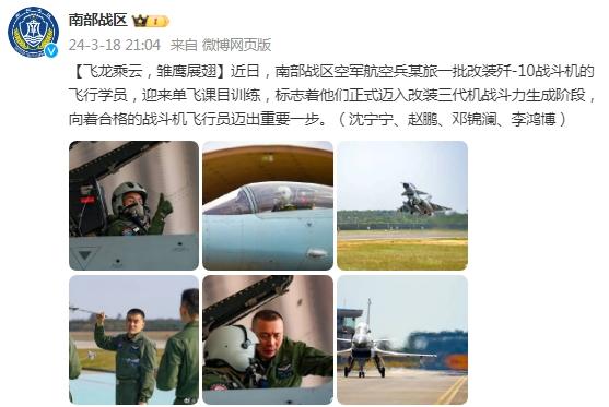 【飛龍乘雲,雛鷹展翅】近日,南部戰區空軍航空兵某旅一批改裝殲-10戰鬥機的飛行學員,迎來單飛課目訓練,標誌着他們正式邁入改裝三代機戰鬥力生成階段,向着合格的戰鬥機飛行員邁出重要一步。(沈寧寧、趙鵬、鄧錦瀾、李鴻博)