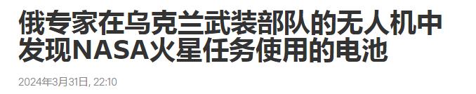 烏克蘭方面也在通過提高FPV無人機的部件性能,延長FPV無人機的續航時間。據俄羅斯衛星新聞網3月31日報道,俄羅斯綜合解決無人機問題中心的負責人德米特里·庫茲亞金表示,俄羅斯專家在繳獲的烏克蘭FPV無人機中發現了美國國家航空航天局在火星計劃中使用的電池。