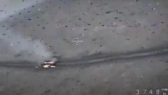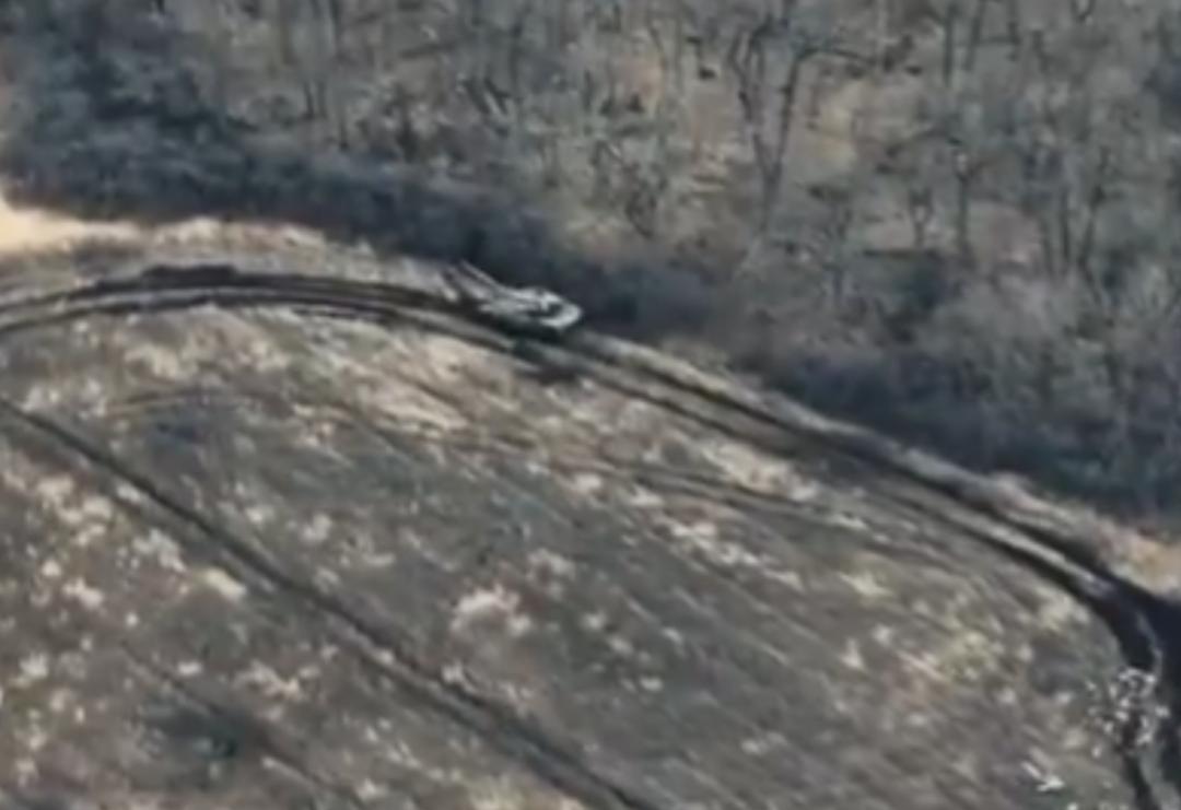 在另一段畫面中,一架偵察無人機拍攝了俄戰車被炸燬後的畫面。