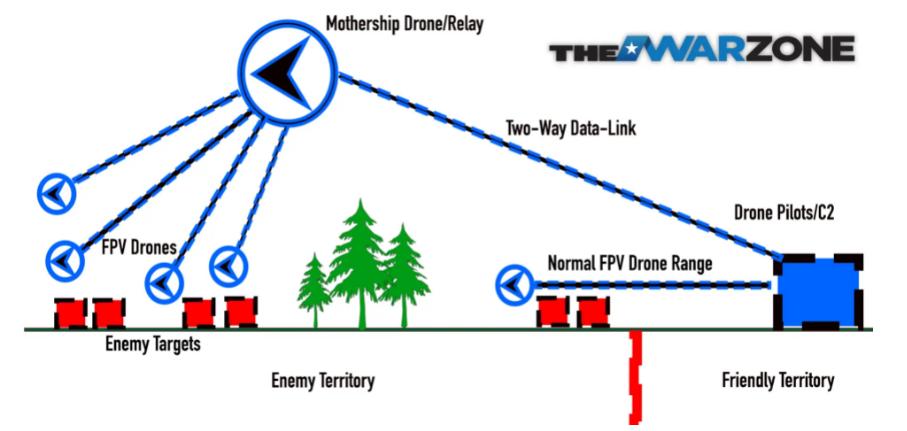 “戰區”網站3月26日一篇題爲“FPV無人機母機還能中繼信號,具有巨大優勢”的文章稱,關於俄羅斯正在使用這種無人機“母機”系統的說法正在流傳,這一設計概念可以克服FPV無人機的主要缺陷。