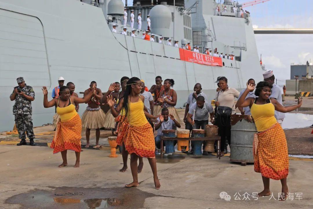 ▲莫桑比克人員表演當地特色舞蹈歡迎編隊到訪。 王遠方 攝