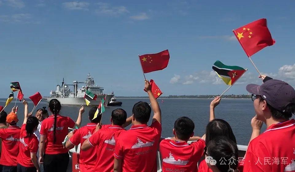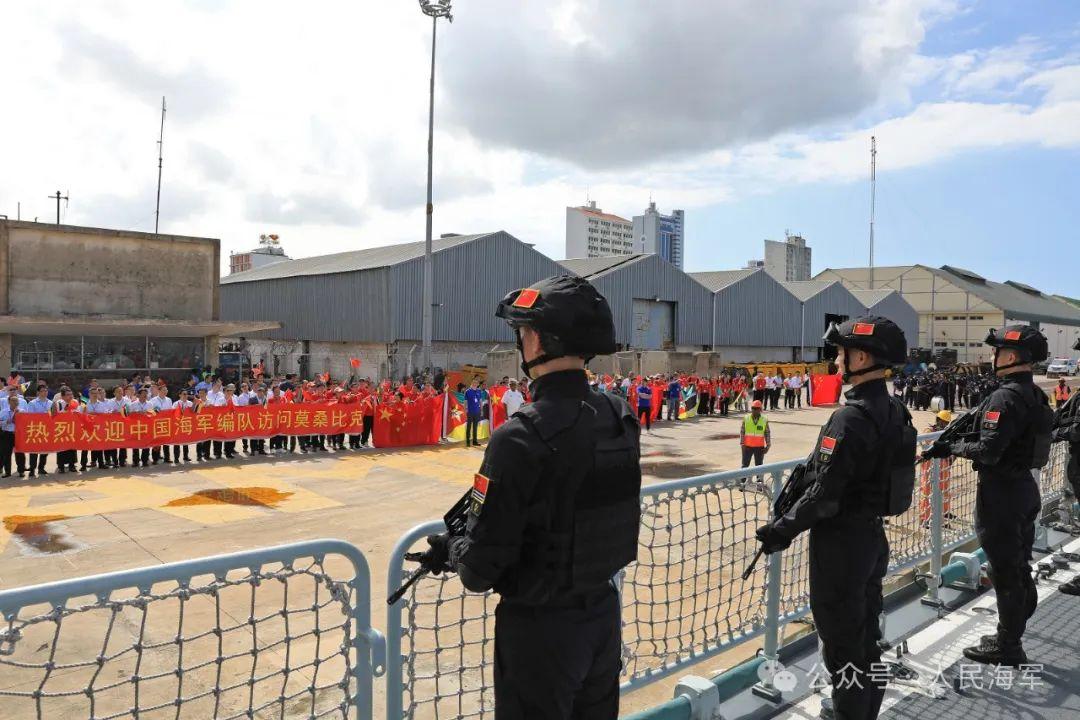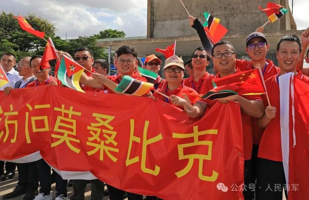 展開“熱烈歡迎中國海軍編隊訪問莫桑比克”的橫幅