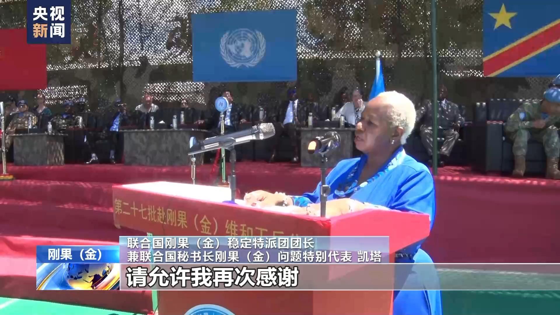 聯合國剛果(金)穩定特派團團長兼聯合國祕書長剛果(金)問題特別代表 凱塔:請允許我再次感謝所有中國維和工兵和醫療分隊的官兵們,感謝他們不僅爲軍警人員、本國和國際的文職人員,更爲剛果(金)作出重要貢獻。