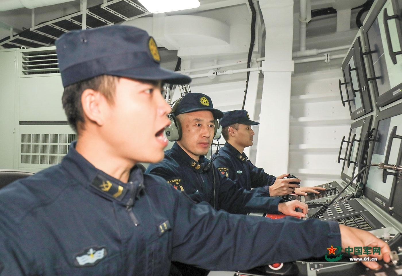 “發現空中‘敵’導彈威脅!”突然,某艦雷達戰位報告“敵情”。編隊各艦密切協同,迅速組成防空陣型,發射干擾彈形成防禦屏障。