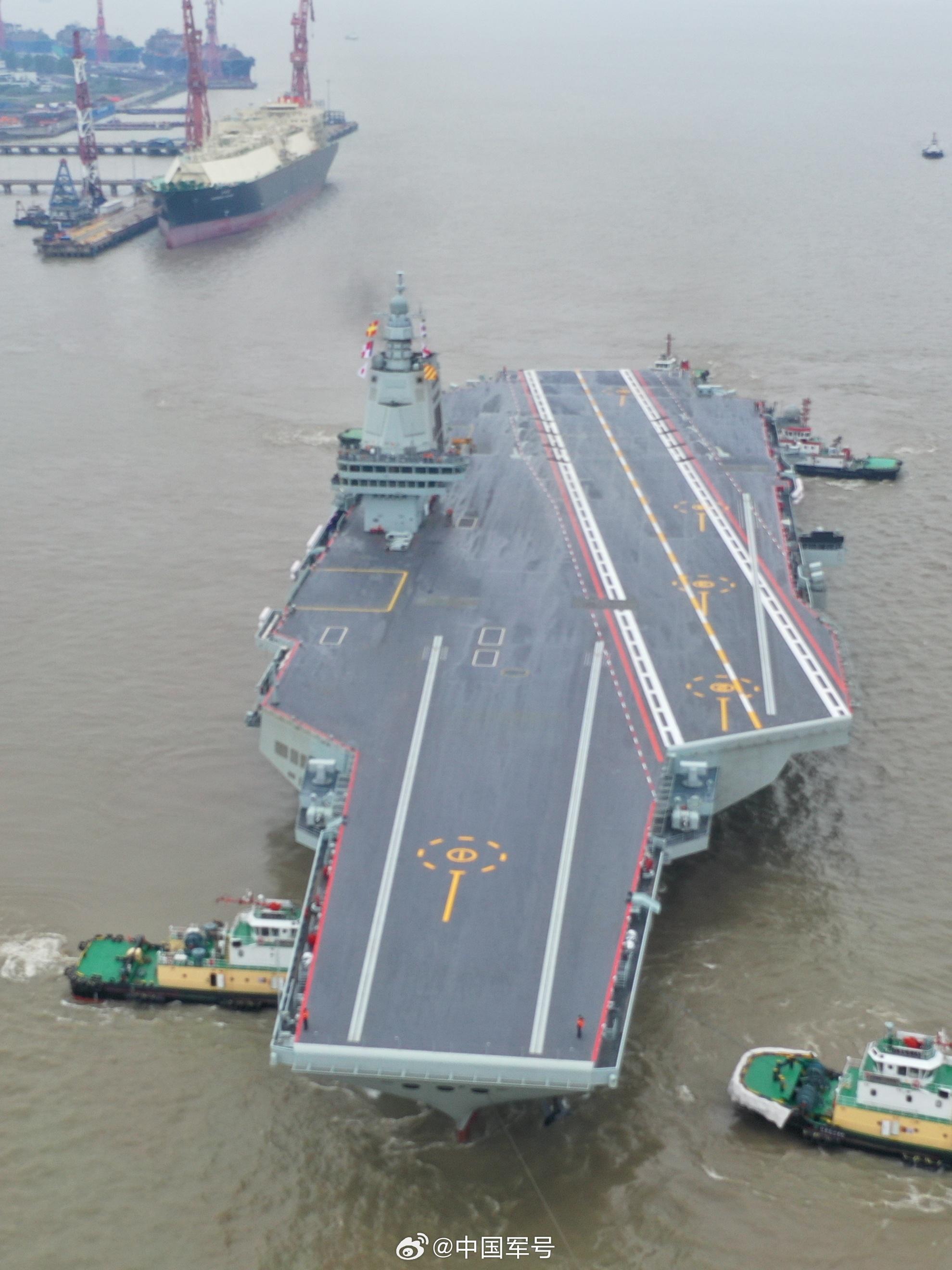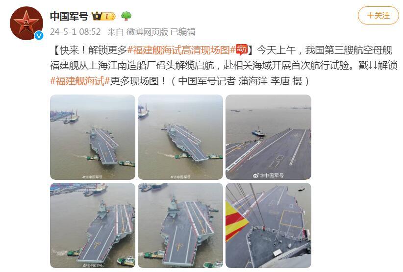 高清現場圖!我國第三艘航母福建艦開展首次航行試驗