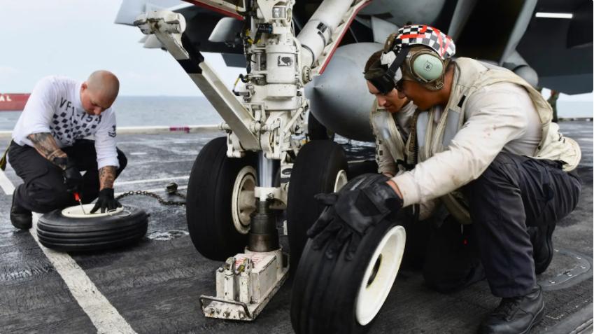 他解釋說,“超級大黃蜂”戰鬥機在航母甲板上攔阻降落時,主起落架會受到極大衝擊,輪轂很容易變形。如果出現這樣的問題,輪胎連同輪轂都會被取下並丟棄。格隆達確認說:“我們每年要使用166個這樣的輪胎組件,它們的價格是六位數。”報道稱,假設每個輪胎組件的價格爲10萬美元,簡單的數學計算表明,美國海軍每年爲更換這些輪胎的費用就高達1660萬美元。