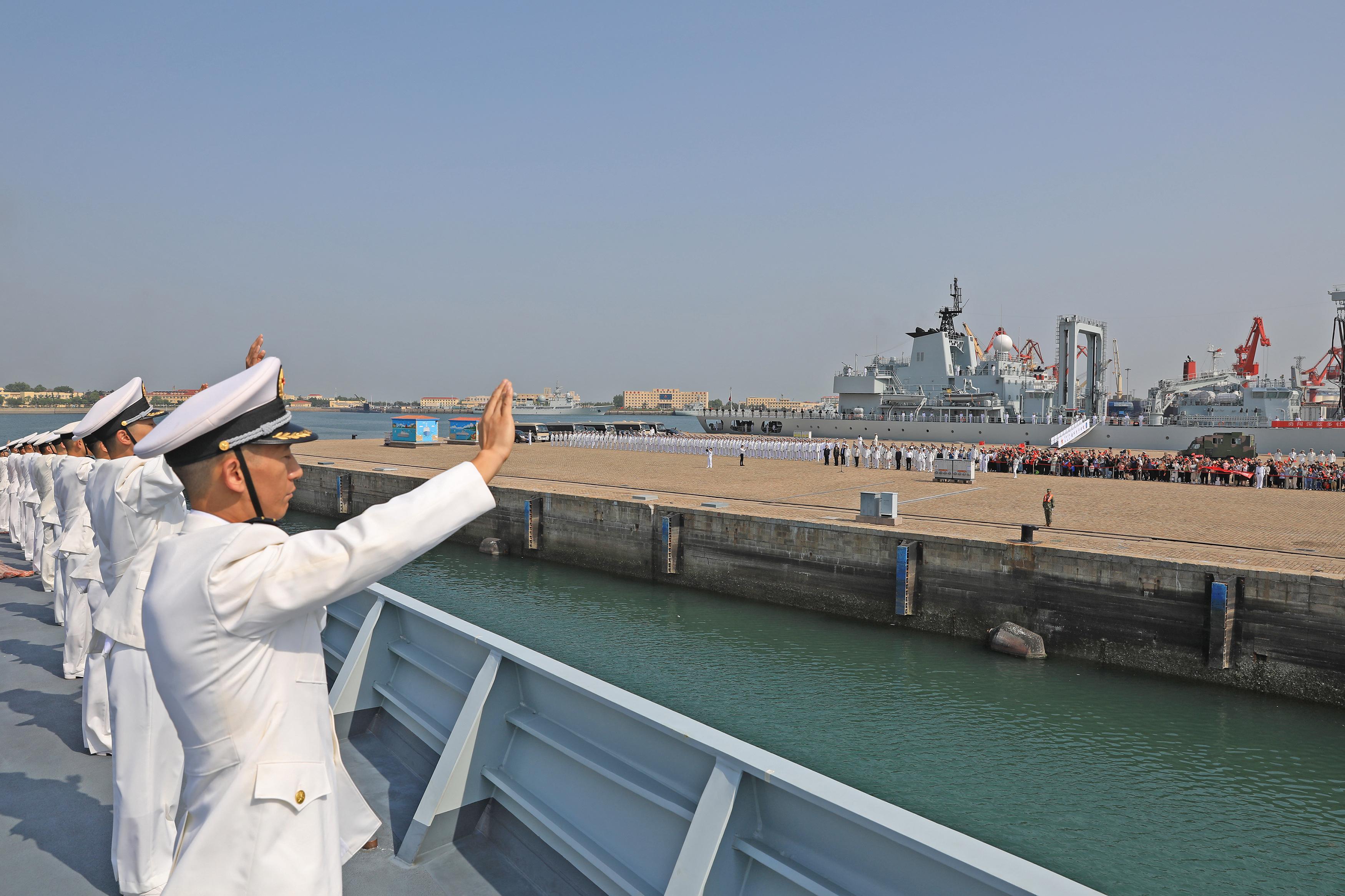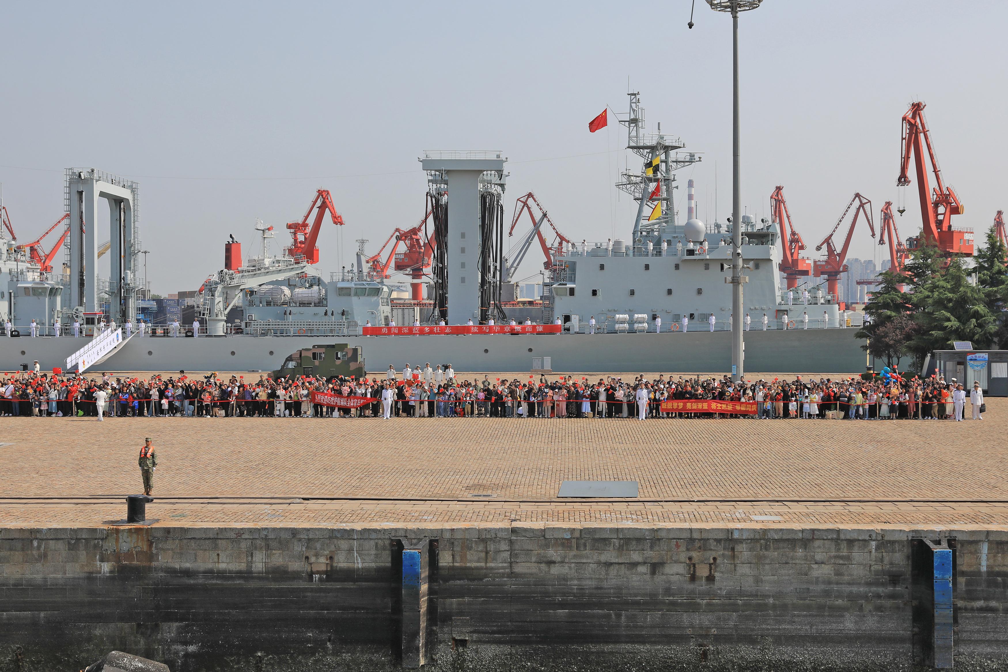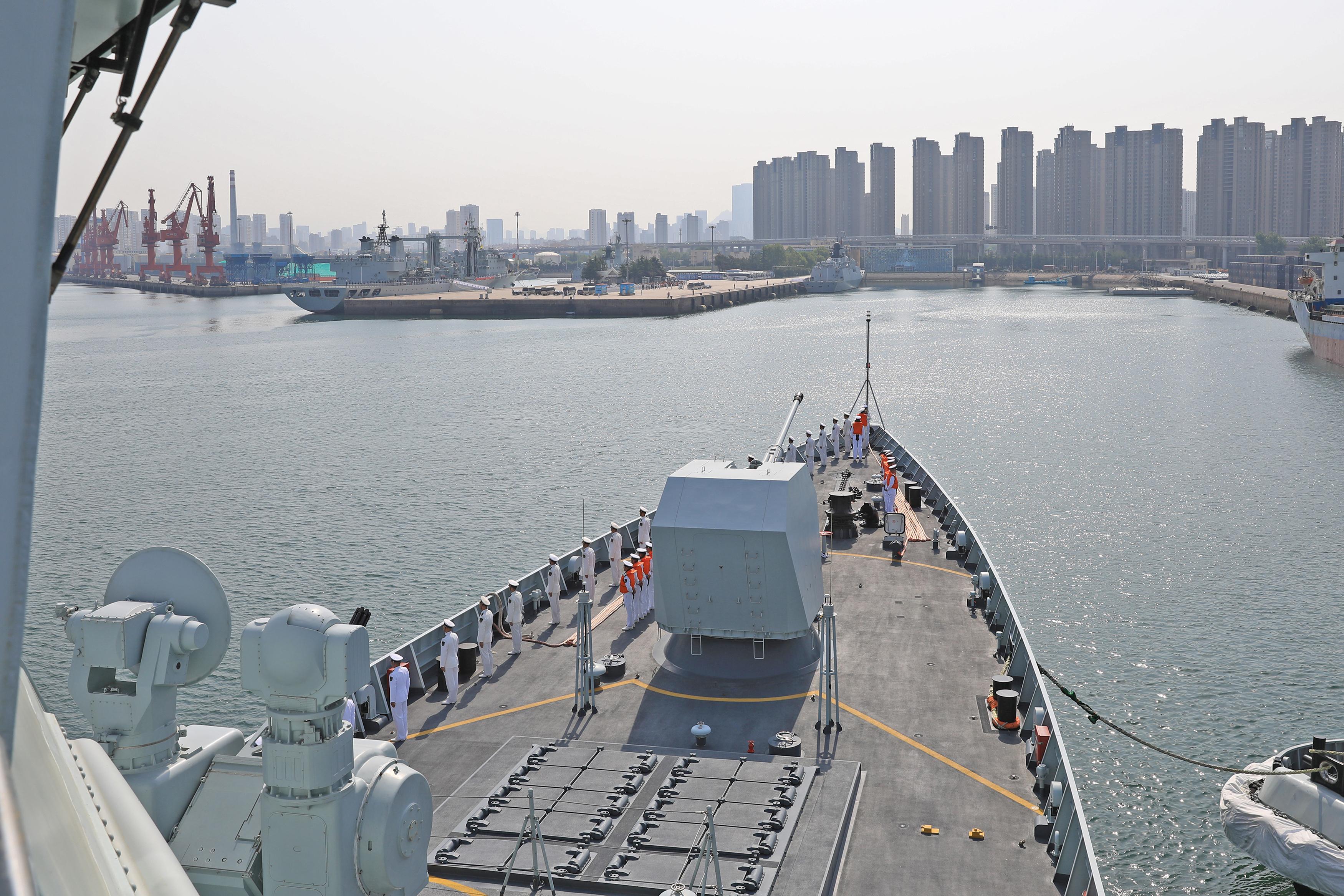 5月17日上午,由導彈驅逐艦烏魯木齊艦、導彈護衛艦臨沂艦和綜合補給艦東平湖艦組成的海軍第45批護航編隊,在歷經249個晝夜、5萬餘海里航程,圓滿完成護航、聯演及順訪任務後,返回青島某軍港。