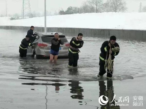 雪天穿着短褲跳水救人的