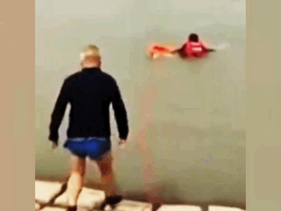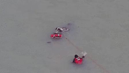 他穿着單薄短褲破冰救人的視頻
