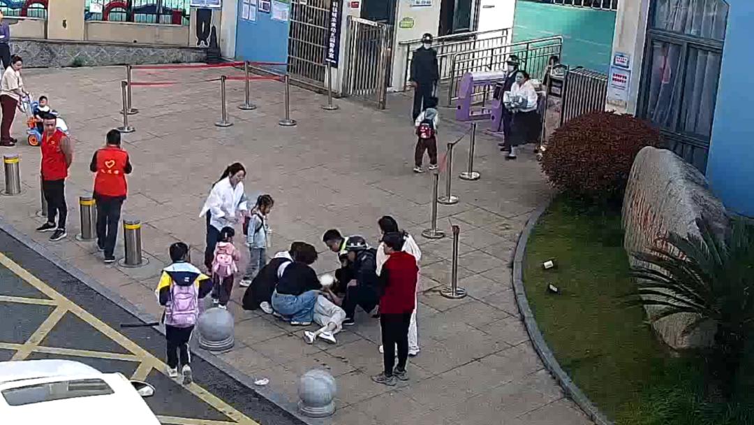 學校老師和保安第一時間發現了異常,迅速趕到家長身邊,並立即撥打120急救電話。