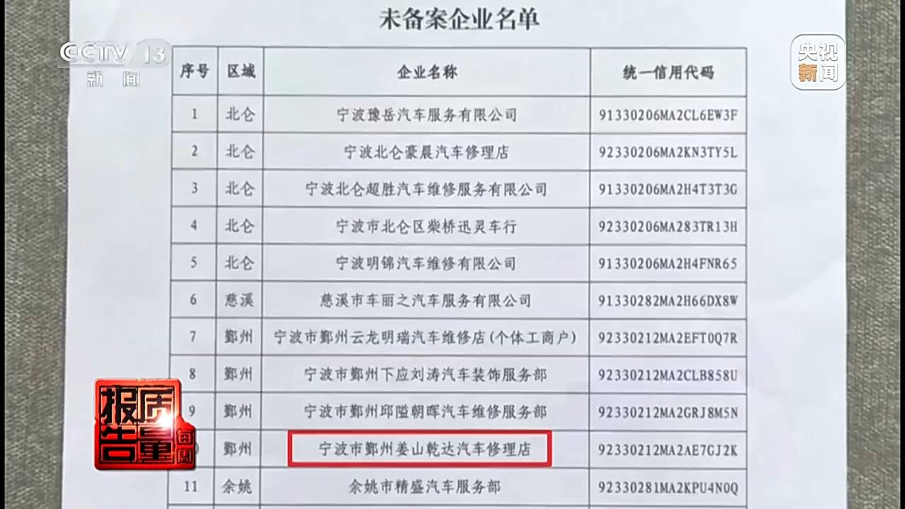 誠信修專班隨即將這家維修廠列入了未備案企業名單,並下發了執法檢查通知。
