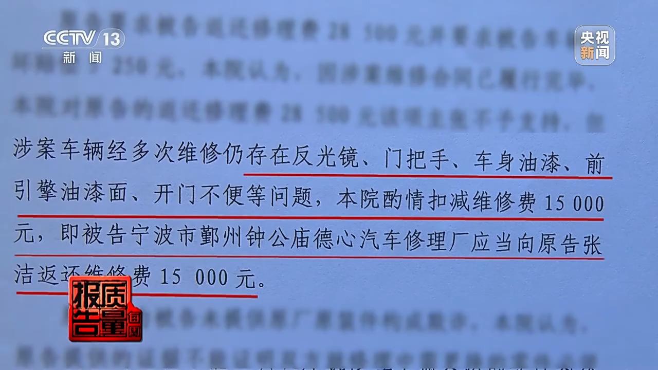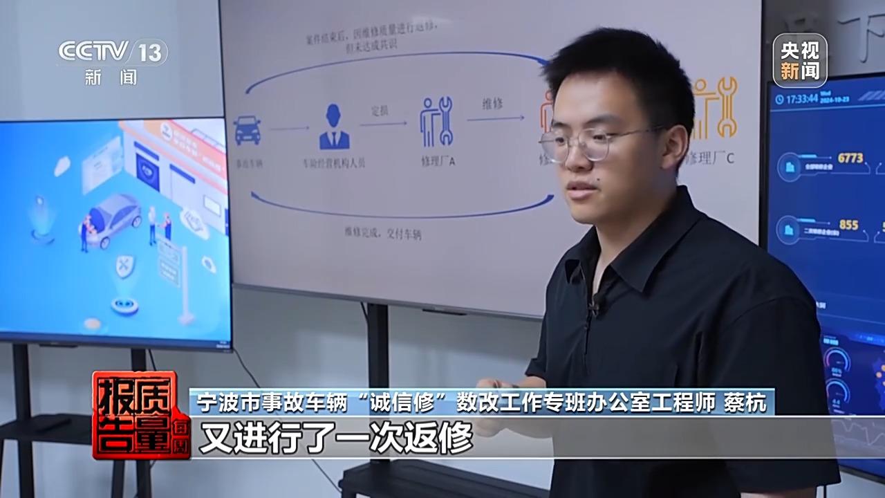 寧波市事故車輛“誠信修”數改工作專班辦公室工程師 蔡杭:在修理廠並完成維修之後,他就直接把車子交付給了車主,車主發現了維修質量問題,又進行了一次返修。