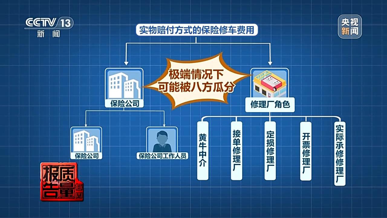 中央財經大學金融法研究所所長 黃震:對於保險公司來說,既然選擇了實物理賠,就有法定義務釐清賠付項目。不僅不能賠付所謂的回扣費用,更要保證維修費用覈定真實準確,有法定責任排除虛高費用,也有法定責任監督修理廠依法合規,真材實料恢復車輛性能。