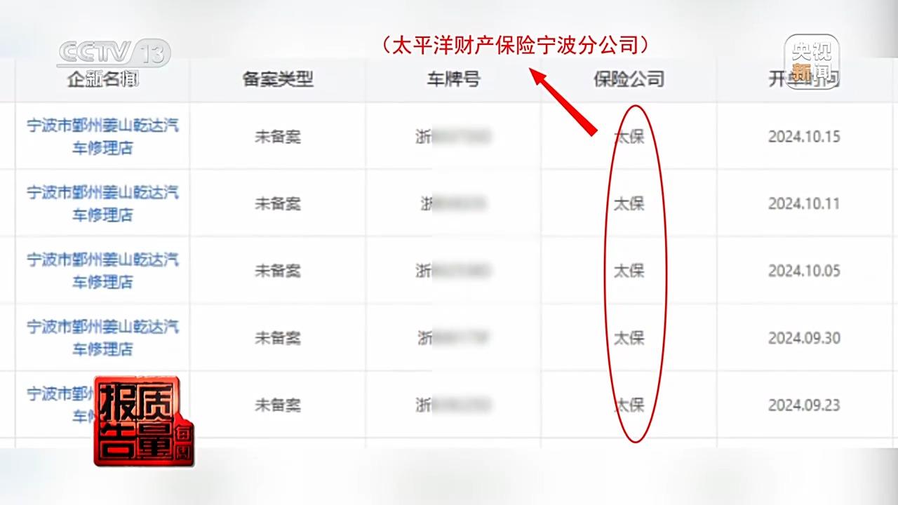 寧波誠信修專班在系統中卻再次發現了太平財產保險寧波分公司與無資質、無維修能力企業的合作案例。