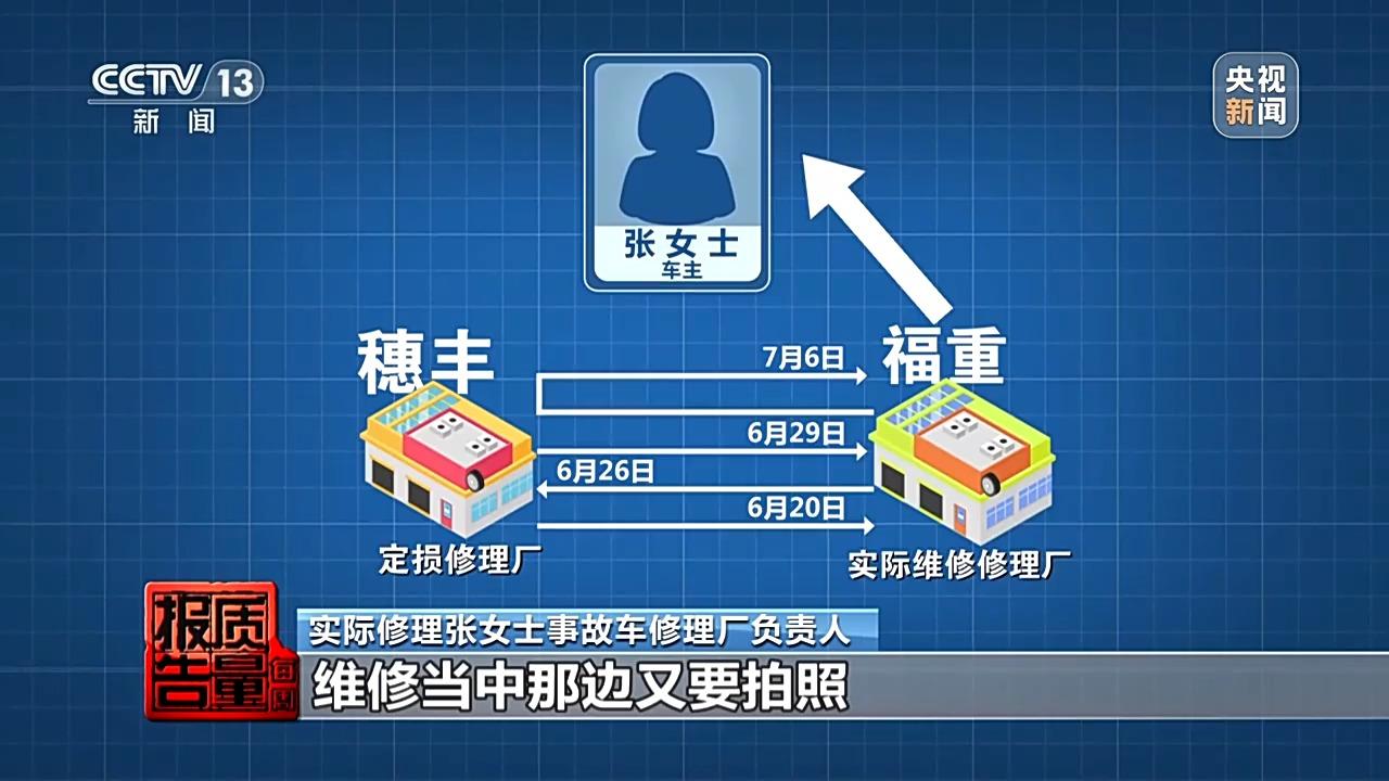 原來實際維修張女士車輛的這個修理廠,缺乏事故車維修的基本設備四輪定位儀,所以一次拖車去負責定損的修理廠是爲借用四輪定位儀,其餘拖車是因爲車輛維修過程中發現了初次定損沒有發現的損壞,所以只好再次拖到負責定損的修理廠去定損,最終造成了張女士車輛在兩個修理廠之間拖車和行駛6次,增加了車輛刮擦和損壞的風險。