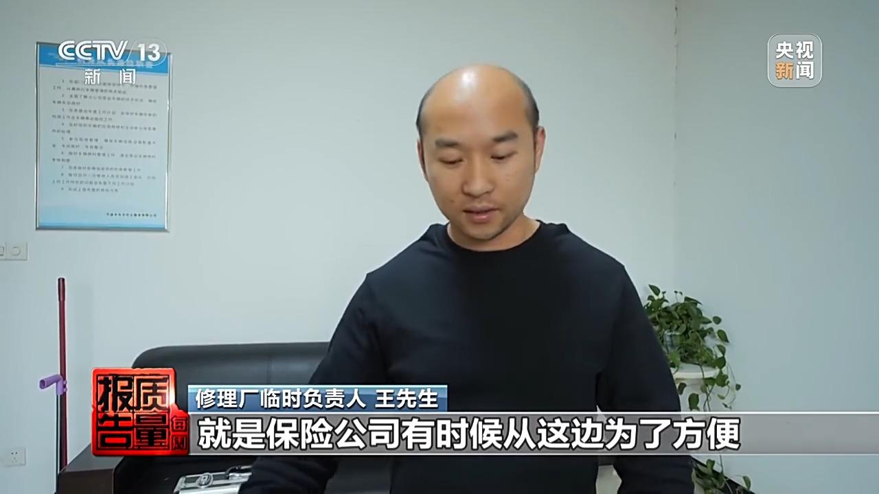 修理廠臨時負責人 王先生:保險公司有時候從這邊爲了方便,類似一個前置中轉站一樣,稍微出個幾百塊錢或是多少錢出一下,然後必須有一個抬頭。