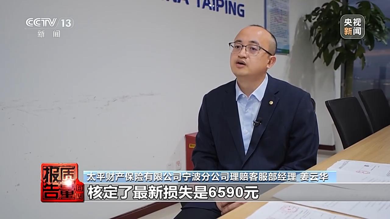 太平財產保險有限公司寧波分公司理賠客服部經理 姜雲華:覈定了最新的損失是6590元,這個事情我們第一時間跟被保險人確認。