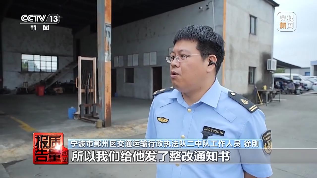 寧波市鄞州區交通運輸行政執法隊二中隊工作人員 徐剛:未發現有維修行爲,但是他工單上有單子,所以我們給他發了整改通知書。