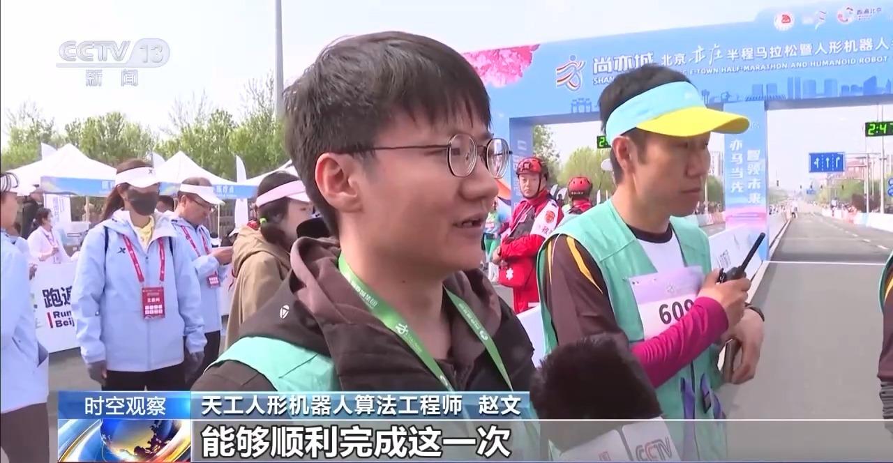 天工人形機器人算法工程師 趙文:非常興奮和激動,能夠順利完成這一次人型機器人的半程馬拉松。這次的成績其實非常好,比我們之前的訓練賽都要好,創造了機器人的個人最好成績。接下來做一些技術上的優化,同時我們的人員配合也會更加緊密一些,這樣在比賽的時候也會更加順利。
