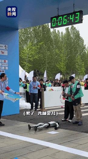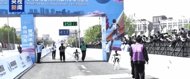 經過激烈角逐,“天工”機器人在人類選手的陪伴下以2小時40分42秒奪冠。