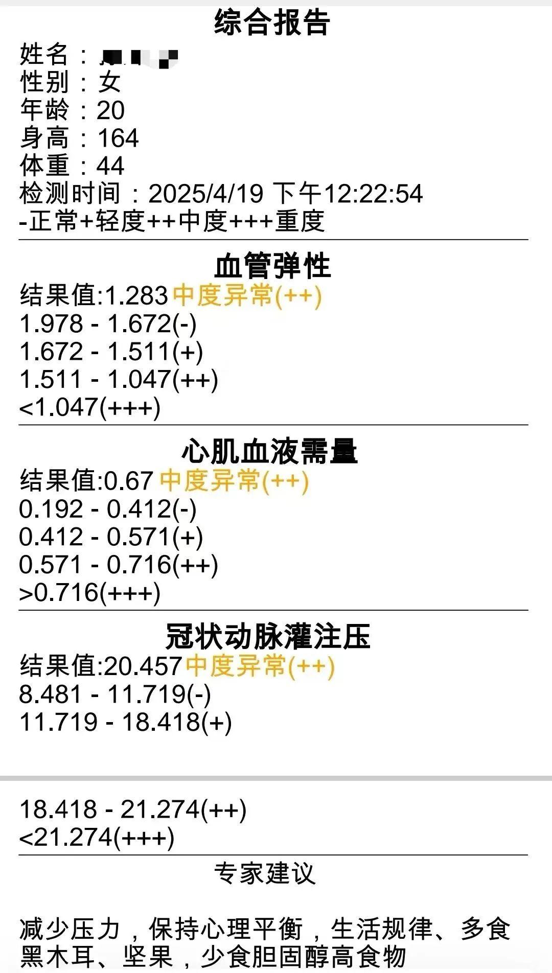 包含各項指標的“身體診斷書”