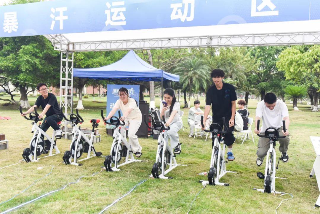 同學們可以在動感單車上“騎行”