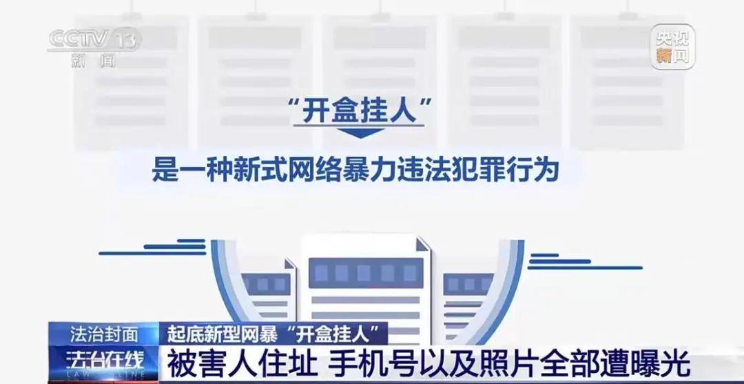 據央視新聞報道,“開盒” 是一種新式網絡暴力違法犯罪行爲。