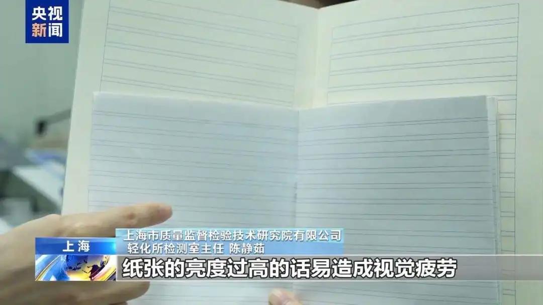 上海市質量監督檢驗技術研究院有限公司輕化所檢測室主任 陳靜茹:小朋友在做作業的過程中,紙張的亮度過高,易造成視覺疲勞,對眼睛的刺激比較大,長期接觸對視力是有不利影響。