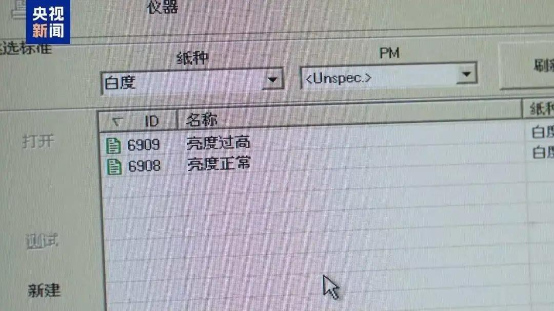 上海市質量監督檢驗技術研究院有限公司輕化所高級工程師 肖建芳:剛纔我們對這一批覆印紙進行了測試,可以看到現在複印紙的D65亮度數值都超過了100%。國家對複印紙的D65亮度要求應該小於等於95.0%,現在已經大於100%了,遠超過國家標準要求。而且學生用品對於D65亮度的要求應該小於等於85.0%,如果學生一旦使用這種市面上所售賣的高亮度複印紙的話,長期使用可能會對視力產生不利影響。