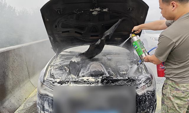並迅速下車嘗試撲救
