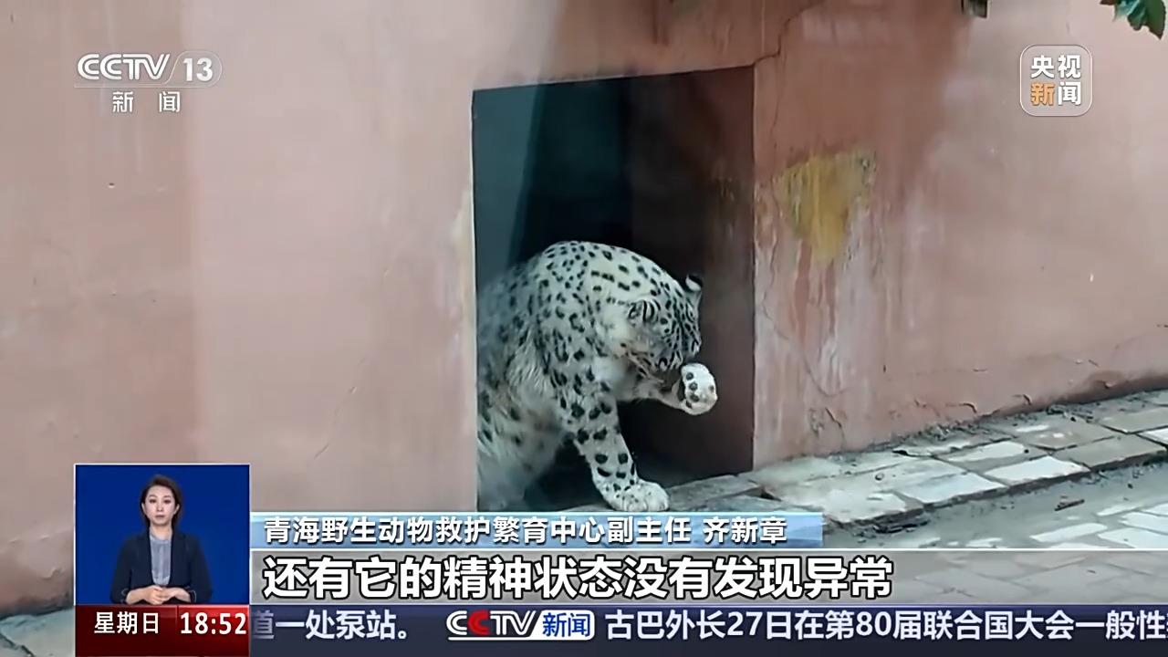 青海野生動物救護繁育中心副主任 齊新章:它的身體外觀和精神狀態都沒有發現異常。目前,它在雪豹繁育基地生活,整體的生理和心理狀態都比較正常,我們也會密切觀察,找一個合適的時機再把它接回豹館。