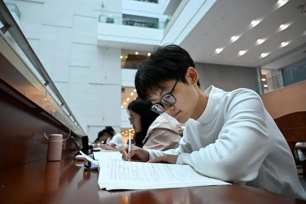 10月11日,孟成在青島農業大學圖書館自習。
