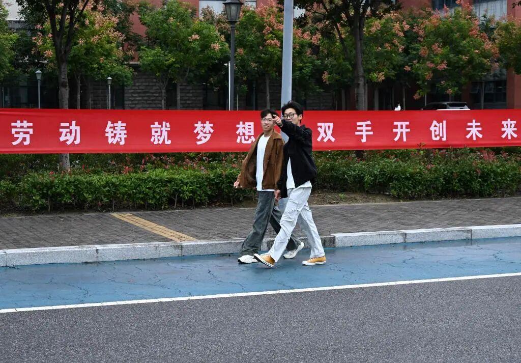 10月11日,孟成(右)和陳浩宇在青島農業大學結伴同行。