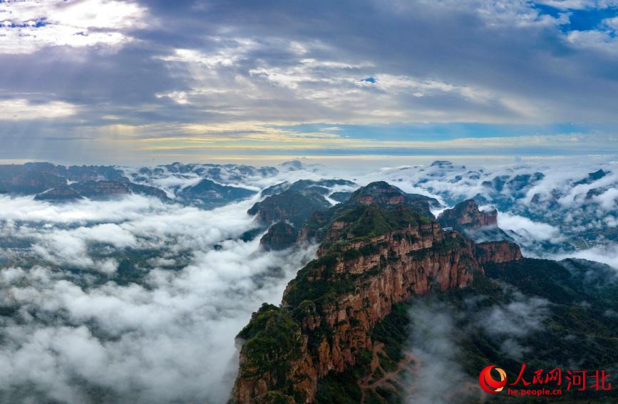 人民網石家莊10月12日電 日前,位於河北省武安市的東太行百里畫廊出現浩瀚雲海景觀,磅礴壯麗的自然山水與翻滾奔湧的雲海景觀交織,爲遊客呈現了一場震撼的視覺盛宴。(楊文娟、李樹鋒)