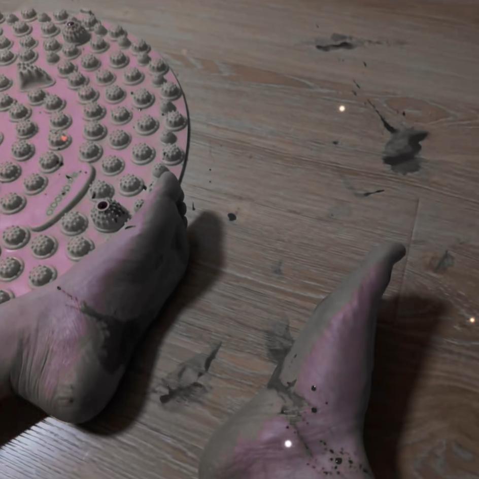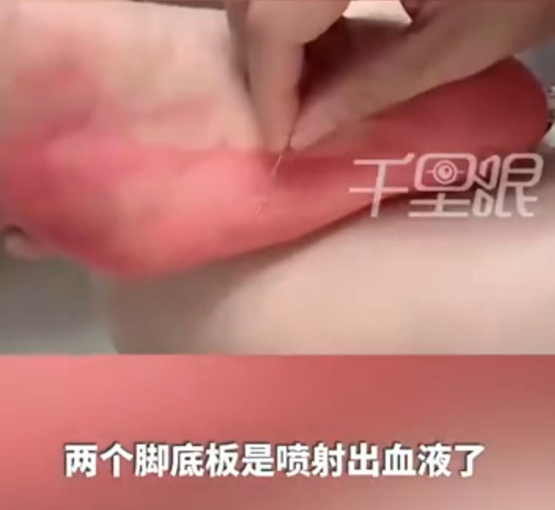 10月9日,上海。有網友發佈視頻稱,自己跟練踩指壓板(或“趾壓板”)時,腳底突然噴血,緊急送醫處理。