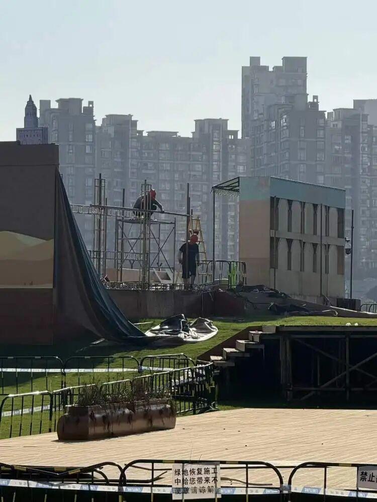 爲何早已結束的活動遲遲未見拆除?該活動主辦方解釋,因供應商之間發生糾紛,拆除工作受阻。目前相關問題已基本化解,拆除作業已啓動,綠地有望在不久後恢復如初。