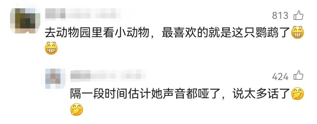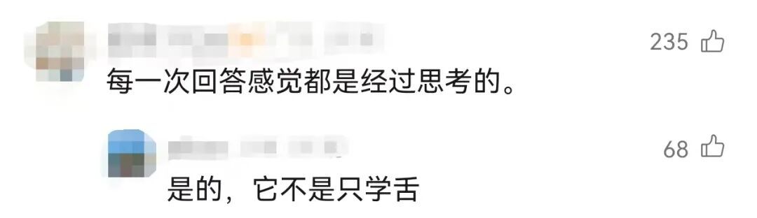 有網友表示,愛嘮嗑的鸚鵡太可愛,它是不是因爲說太多話,所以變成了煙嗓?”有網友打趣,記者和鸚鵡,“一個敢問一個敢答。”有網友覺得,鸚鵡每一次回答,感覺都是經過思考,不只是學舌。還有網友調侃,“一看就是受過高等教育的鸚鵡。”