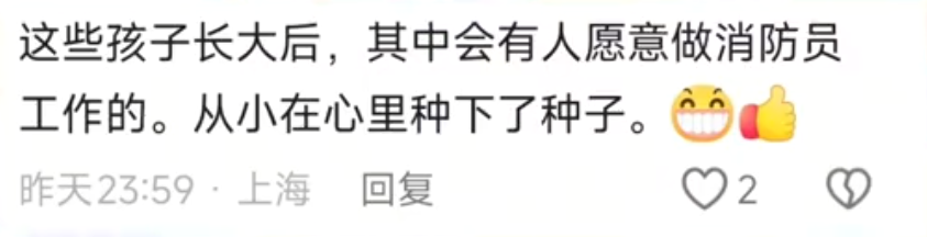也有網友覺得,這次消防員的職業體驗,可以在小朋友的心中留下深刻的印象。