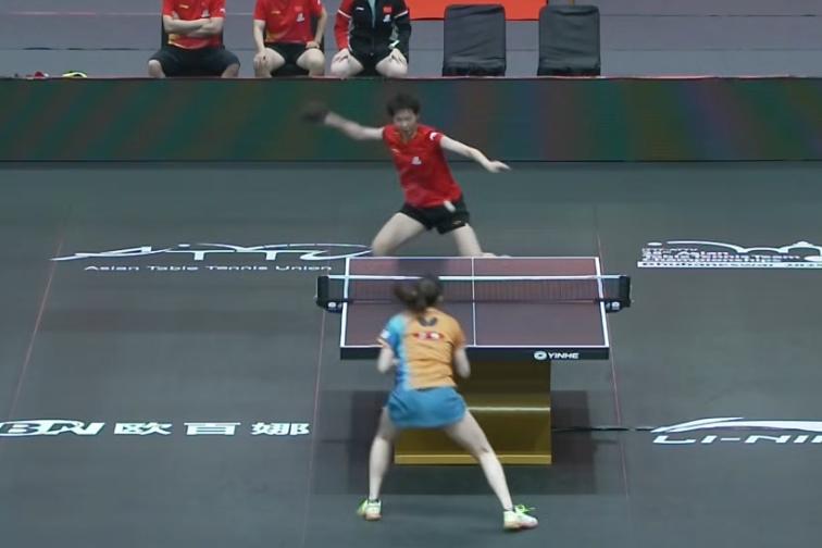 第三盤,蒯曼8-11、12-10、11-6、11-9戰勝早田希娜,中國隊總分3比0獲勝。